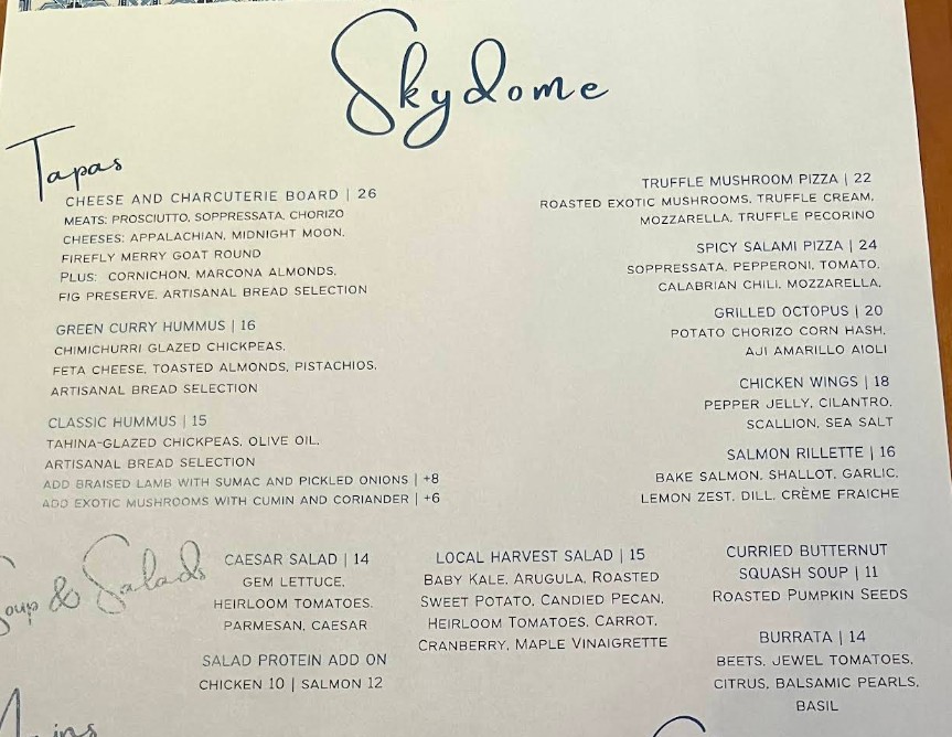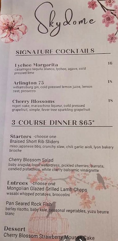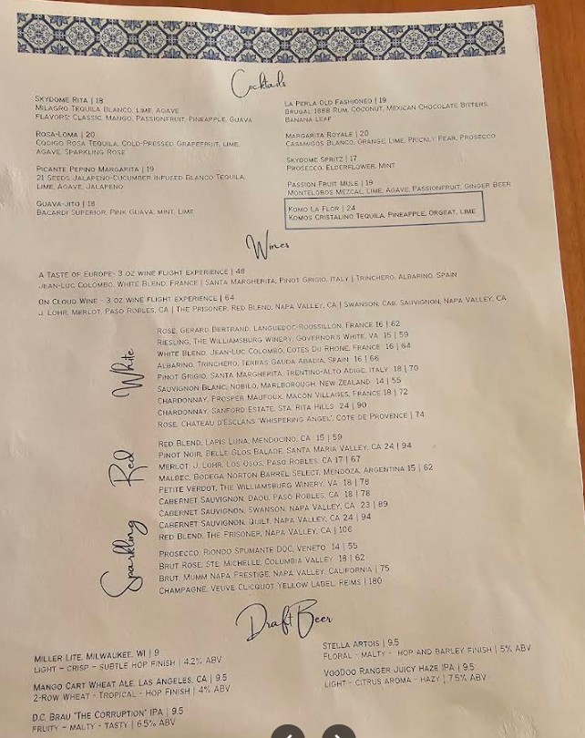 I went to Skydome for my birthday and overall had a good experience. The food was good and the atmosphere was amazing the views alone make it worth visiting. I also really appreciated that they validate parking, which is super convenient. The only downside for me was the service. I waited 10 minutes for my table even with my reservation. Also, I had a later reservation at 8:30, and maybe that played a part, but my server was pretty neglectful when I finally sat down . I had to keep waving her down just to get attention, which took away from the experience a bit. That said, I still really liked the place and would come back, especially for the atmosphere and the view.